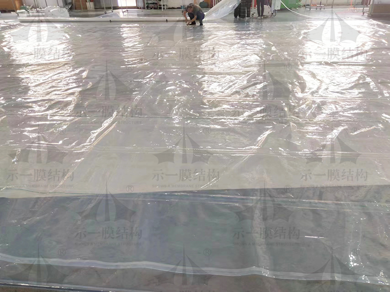 ETFE膜是透明建筑結構中品質優越的替代材料,多年來在許多工程中以其眾多優點被證明為可信賴且經濟實用的屋頂材料。由這種膜材料制成的屋面和墻體質量輕,只有同等大小的玻璃質量的1%;韌性好、抗拉強度高、不易被撕裂,延展性大于400%左右;耐候性和耐化學腐蝕性強,熔融溫度高達200℃左右,并且不會自燃。