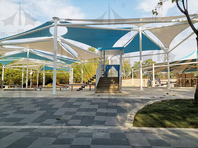 4、防火性與抗震性:膜結構建筑所采用的膜材具有卓越的阻燃性和耐高溫性,故能很好的滿足防火要求。由于結構自重輕,又為柔性結構且有較大變形能力,故抗震性能好。