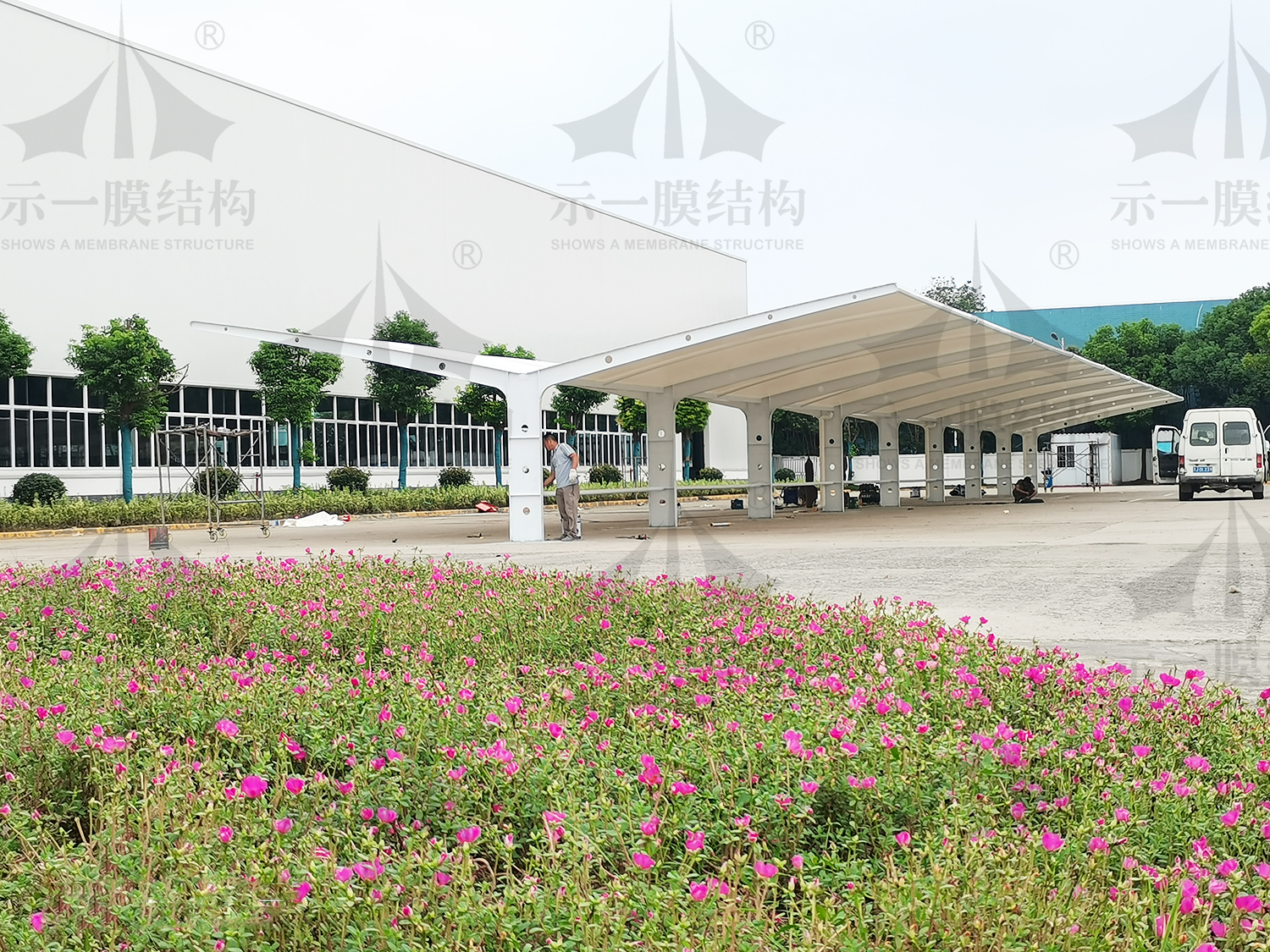 3、膜結構車棚的膜材加工問題,膜材加工也有會裁剪圖,工人根據裁剪圖進行裁剪拼接,這也是非常重要的部分,如果不合適,就會出現膜布小了安裝不上,或者太大了拉不緊等問題。
