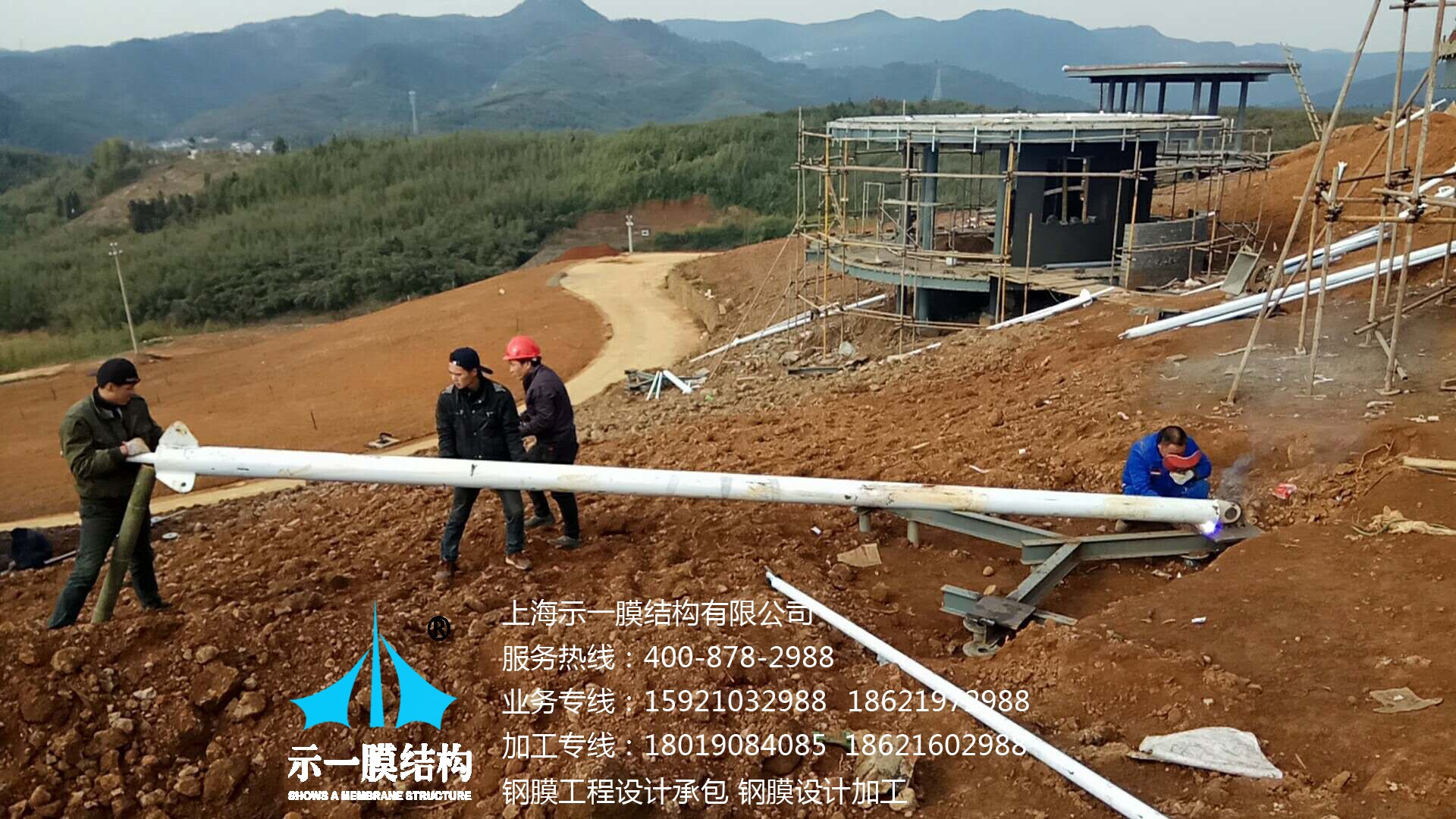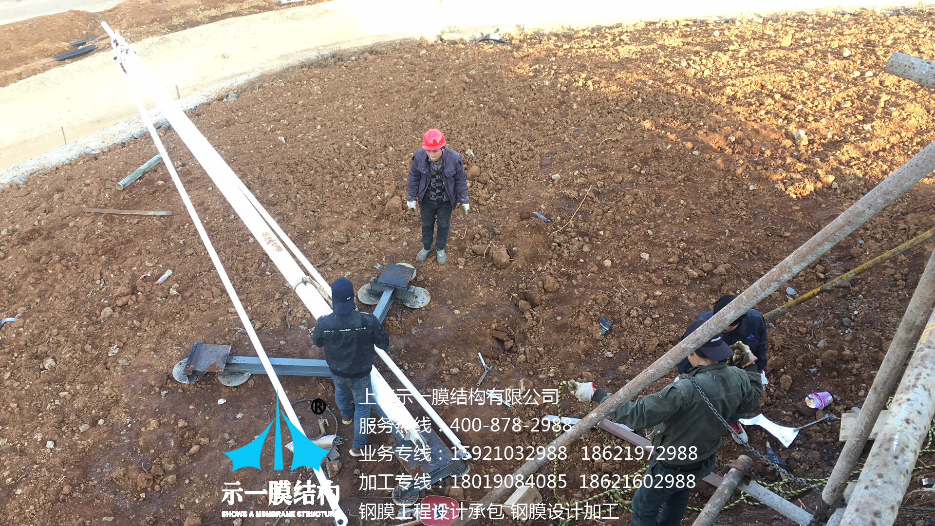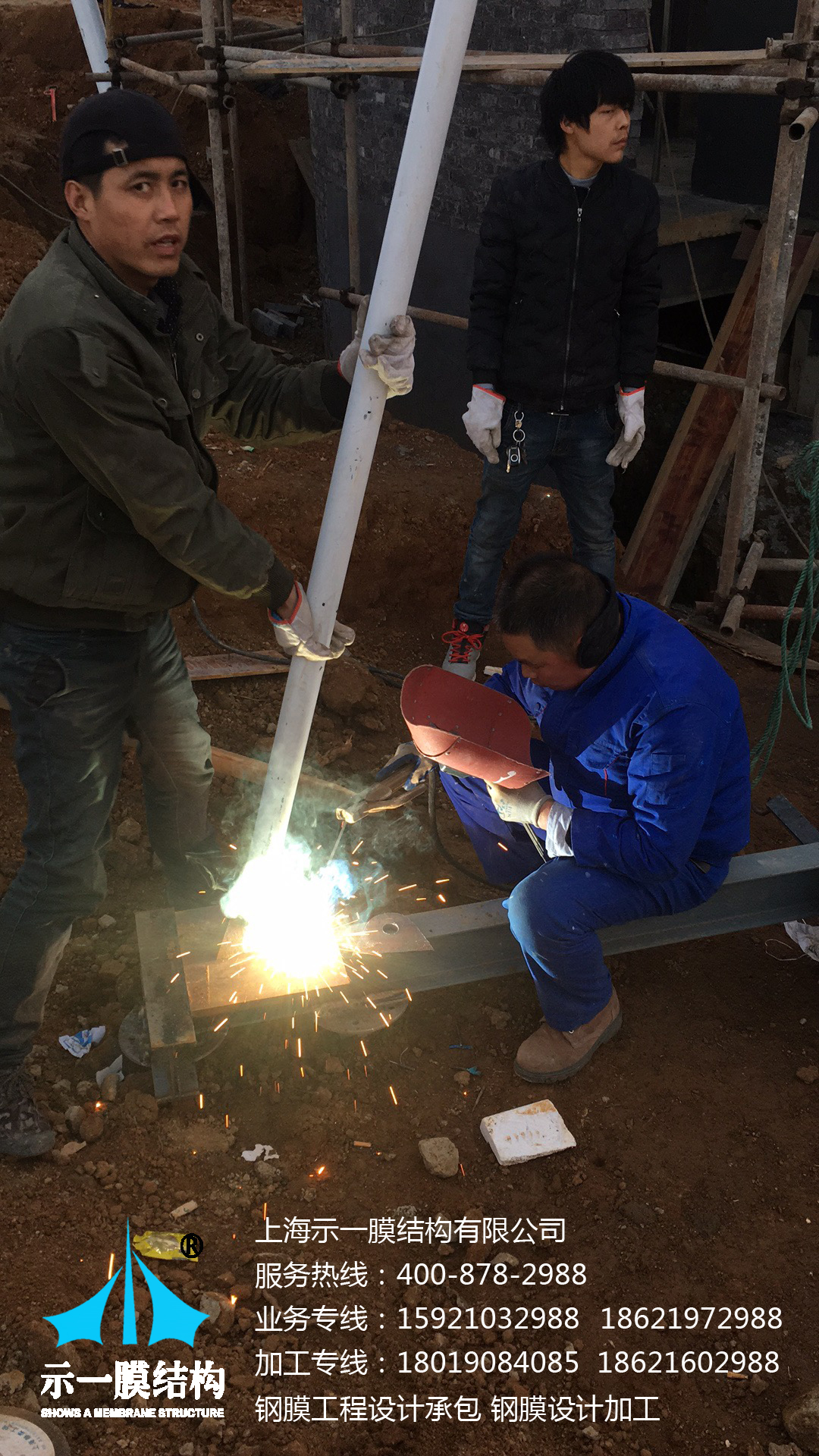 以上就是剛到那邊開始鋼結構支架安裝的部分,我們會在后續的每天都做介紹,請支持上海示一膜結構,多多關注我們哦~~