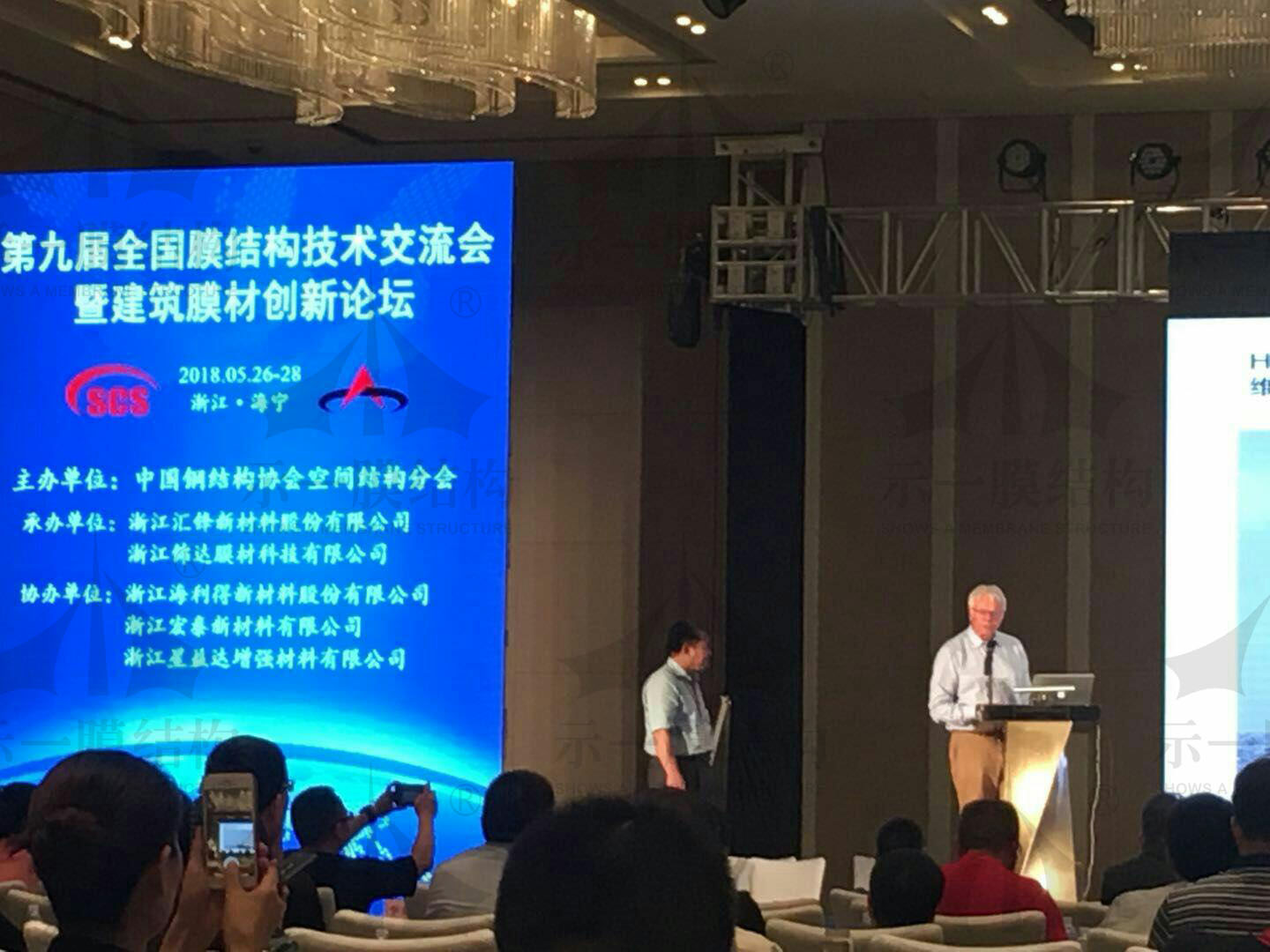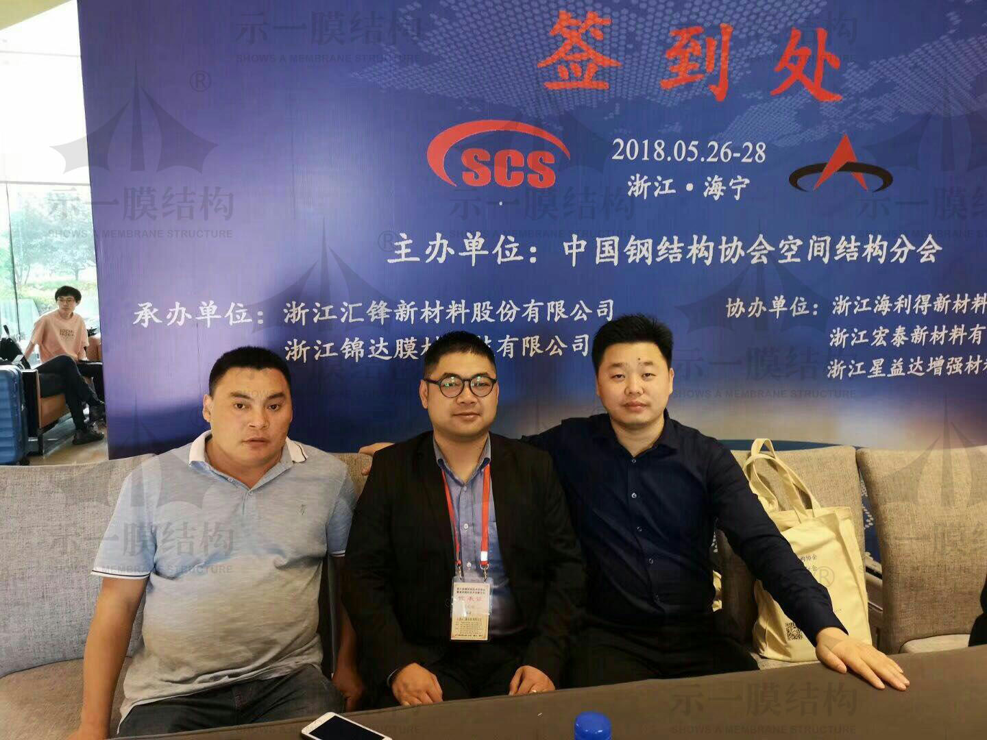 為了增加膜結(jié)構(gòu)公司之間相互交流的機會,更好的促進膜材行業(yè)的技術(shù)創(chuàng)新發(fā)展的企業(yè)精神。上海示一膜結(jié)構(gòu)有限公司緊跟行業(yè)步伐參加了中國鋼結(jié)構(gòu)協(xié)會空間結(jié)構(gòu)分會于2018年5月26日~28日在浙江海寧召開的“第九屆膜結(jié)構(gòu)技術(shù)交流會暨建筑膜材技術(shù)創(chuàng)新論壇”。