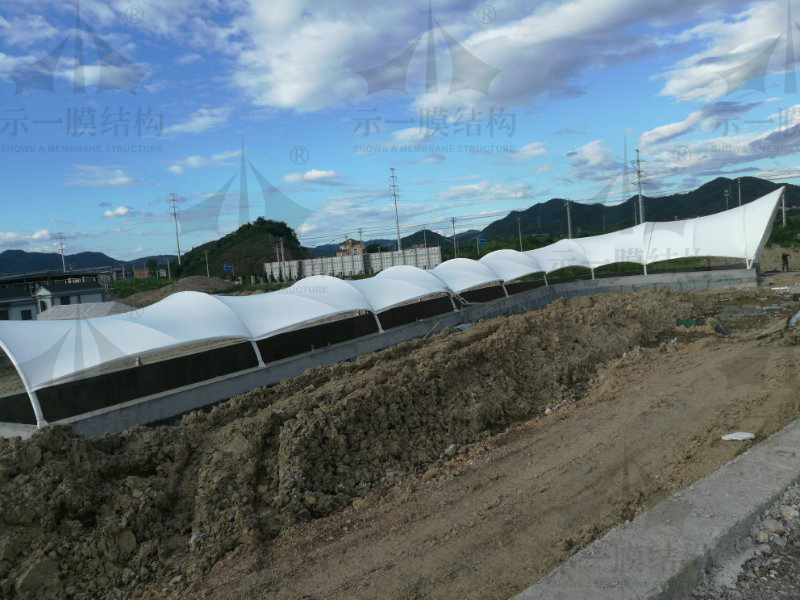 此次環保工程運用了鋼管結構搭配PVDF膜材組建而成。外形大氣,實用效果強。