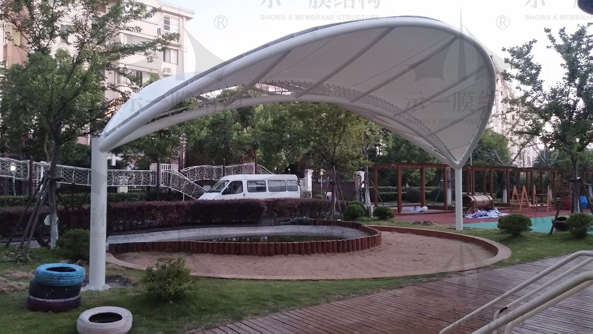 上班途中,沿路的風景也是讓人流連忘返的。途徑一個幼兒園,里面的膜結構景觀張拉棚看著好特別,是以一種張拉的方式矗立在園內的活動區域,即可以遮風擋雨,又可以遮陽,給孩子們的戶外活動提供了很好的保護。膜結構建筑給孩子們帶來更多的是童年的歡樂時光,也給校園增添了一份色彩。