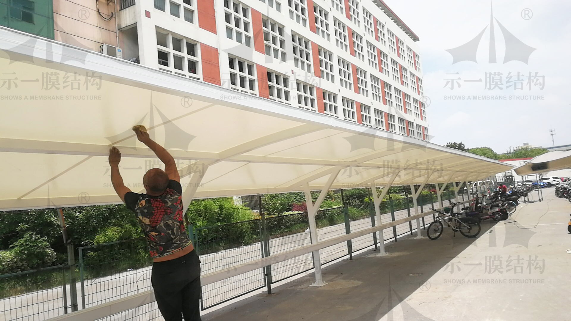 嗨,大家好!今天上海示一膜結構有限公司小編要來介紹的是膜結構停車棚。小編今天帶大家一起去昆山看一看,因為在那里我們示一膜結構剛剛制作完成了一個膜結構停車棚。那可是“新鮮剛出爐”的哦。