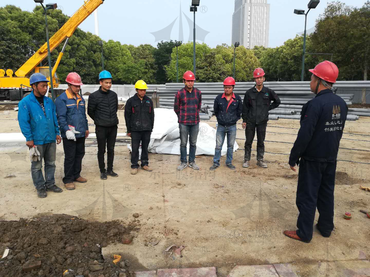 看著一個嶄新又美麗的膜結構建筑一點點慢慢的建造起來,小編的心情是既激動又感動。雖然小編沒有去工地現場,但是從前線傳來的每張照片都讓我們能留下美好的回憶。每一個膜結構工程的背后總有著一群善良可愛的人,這其中也有著無數的汗水和艱辛。當節假日遇上工期他們依然放棄了休息,奮斗在工地現場。他們沒有任何怨言,認真工作按期完工保證質量成為他們的最大目標。我們示一就有這樣一群值得夸獎的伙伴們。