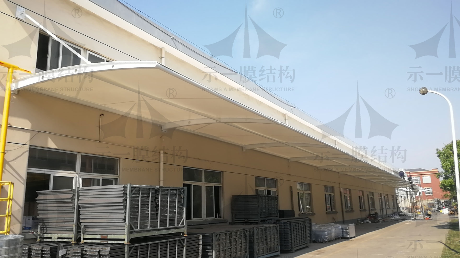 夏天對于有車一族來說膜結構停車棚也是必需品,車子停在膜結構車棚下面減少太陽光照射,對車子是一種很好的保護,對于我們來說也減少了車子損傷帶了的經(jīng)濟損失。在上海示一膜結構青浦辦事處園區(qū)內(nèi)的膜結構車棚和江蘇康達順精密汽車附件制造有限公司內(nèi)的膜結構車棚也已經(jīng)全部安裝完成了。