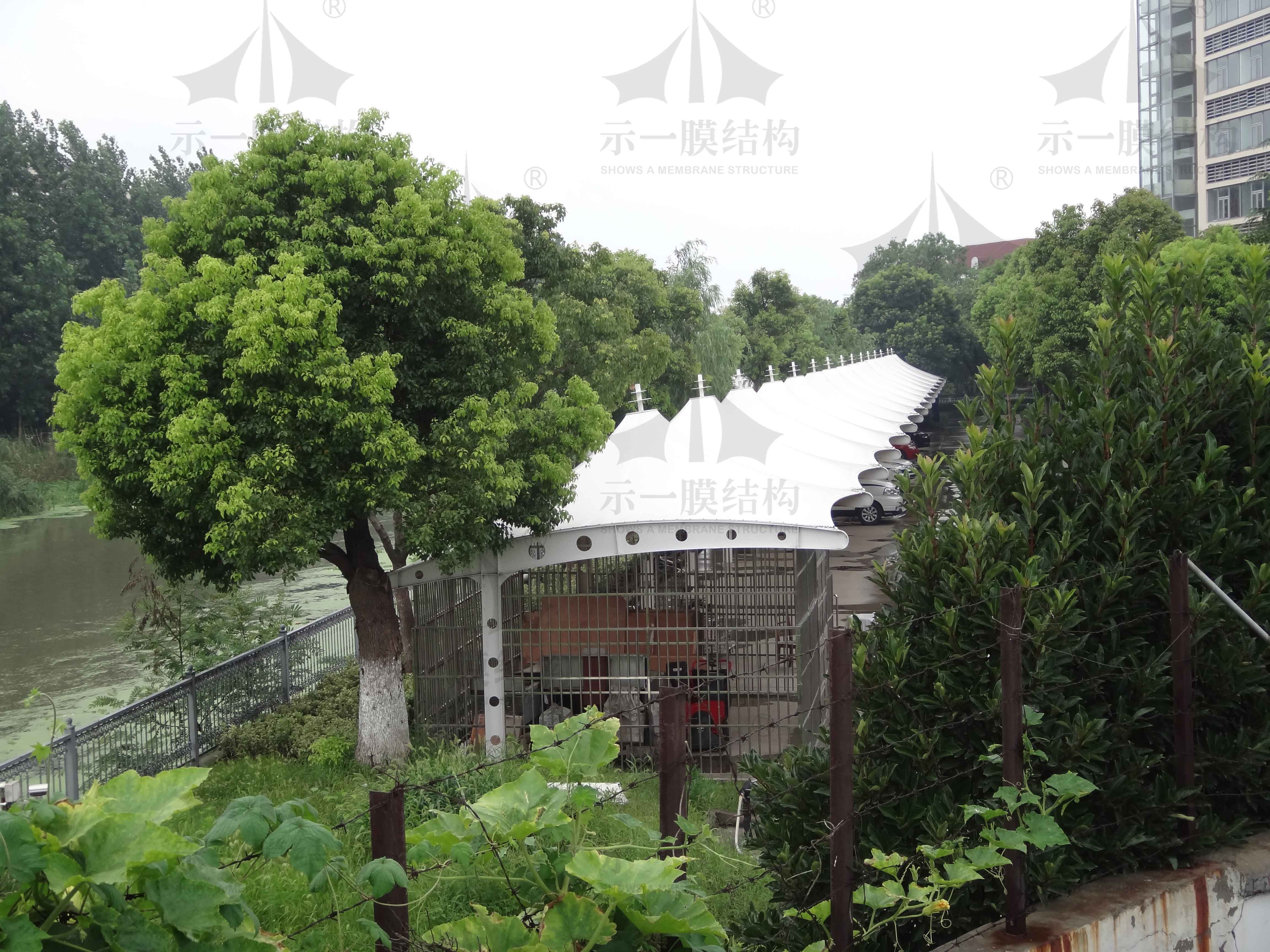 雨中的膜結(jié)構(gòu)停車棚用處多多