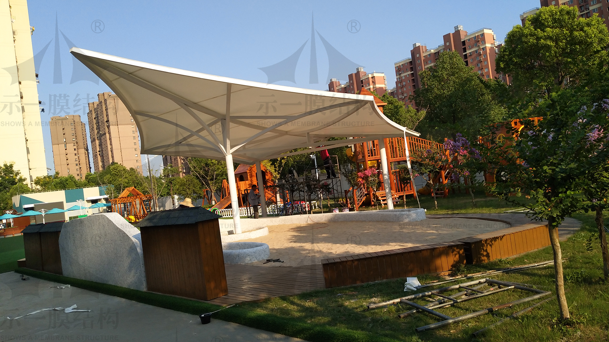 說到沙坑上的膜結構景觀小品,小編的匣子一下子打開了,因為上海示一膜結構公司在膜結構景觀小品制作方面頗有經驗。無論是去年還是今年都承建了這方面的膜結構工程。