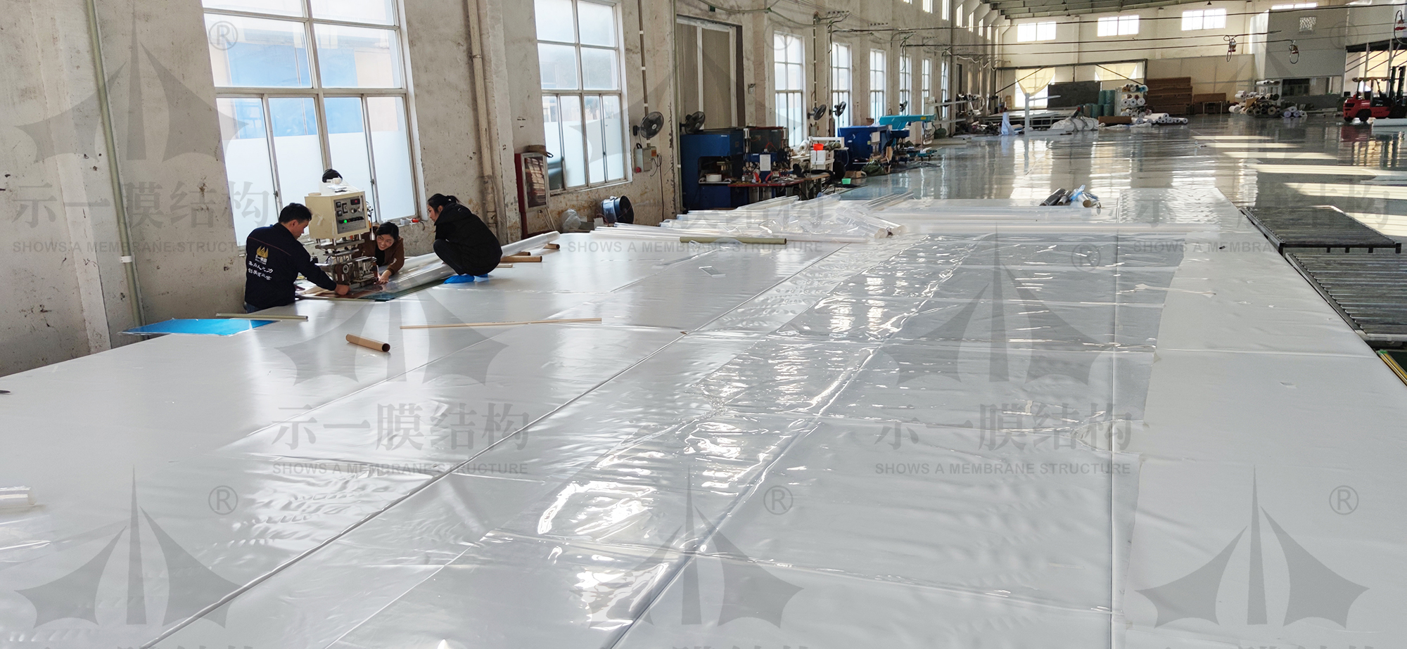 揮別了十一月,翹首迎盼十二月,時間在不知不覺中慢慢走下去。眼看著2020年已經沒剩多少天了,示一膜結構公司都在干什么呢?今天帶著愉快的心情小編帶大家去示一膜結構車間現場看看。