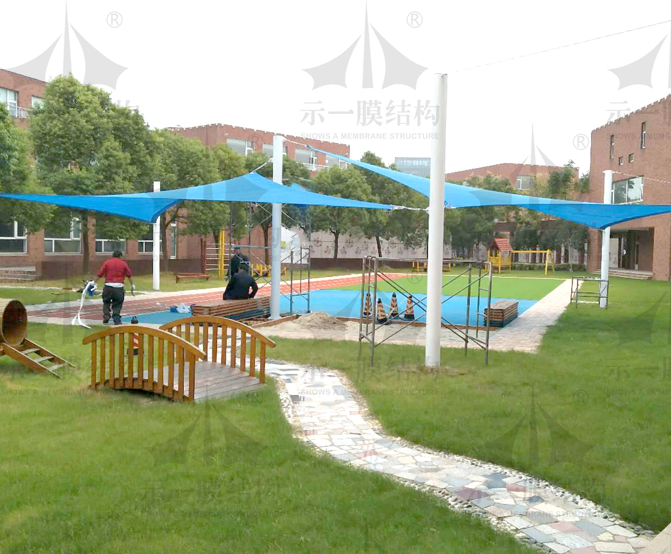 遮陽帆造型上多以張拉的形式為主,設(shè)計(jì)上可以是簡(jiǎn)約的,也可以層疊。在顏色的選擇上也可以豐富多彩,不規(guī)則的形狀總能體現(xiàn)出一種大方優(yōu)雅。面料可采用防水紡織布、膜布等,具有很強(qiáng)的張緊度和面料色牢度,除了相對(duì)比較好打理以外,還自潔性能好。