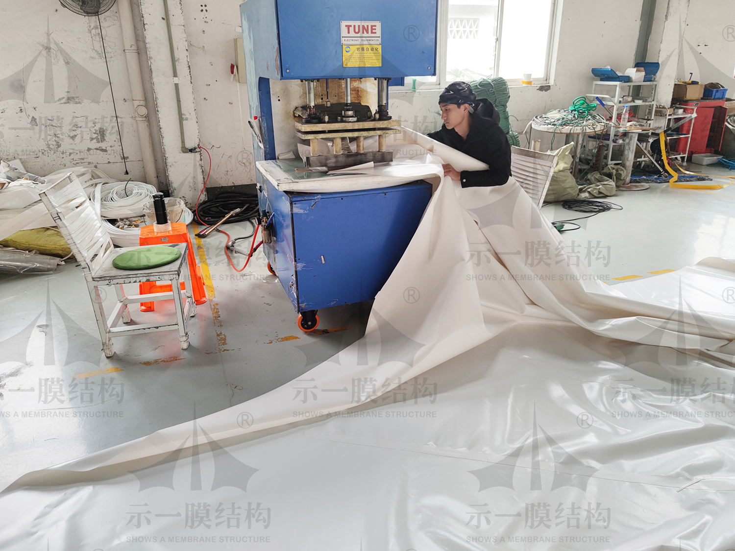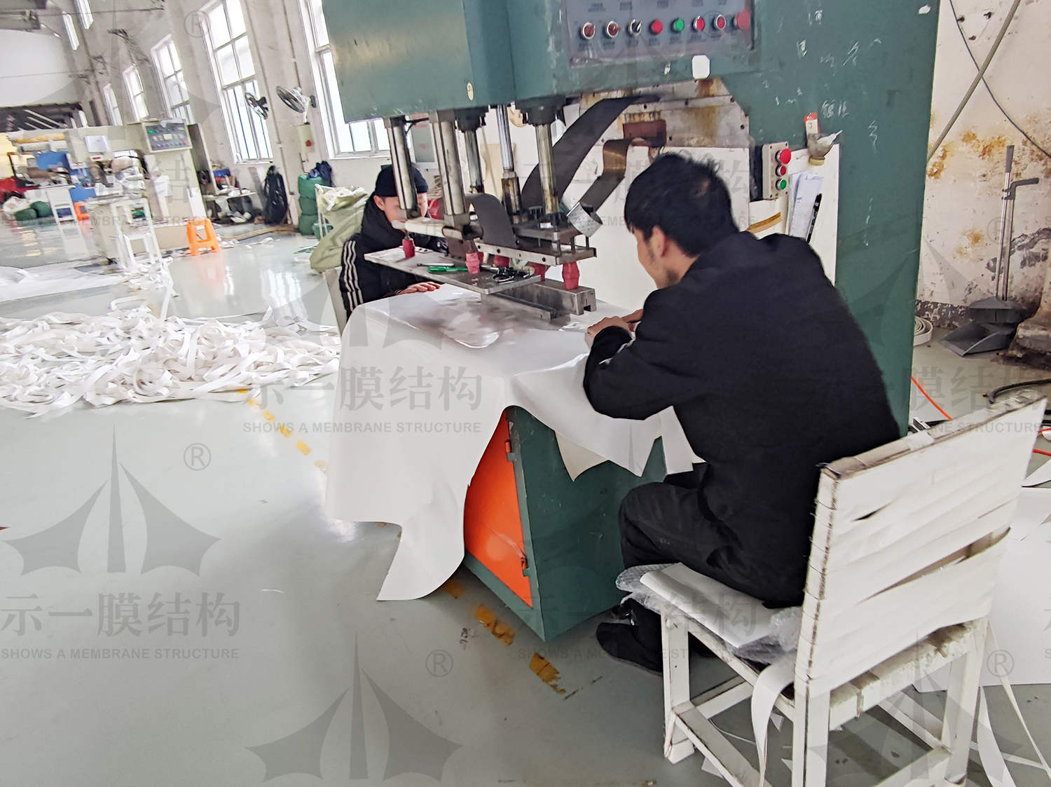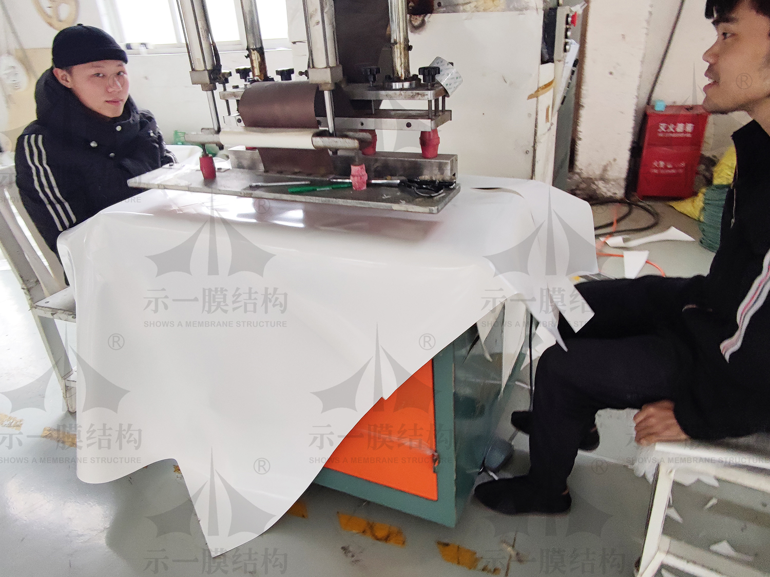 今天跟隨小編兜轉示一工廠現場,我們去示一工廠現場看看小伙伴們都在忙什么呢?本著努力學習的態度,我們在示一工廠現場為大家解說膜結構基本的粘合方法。