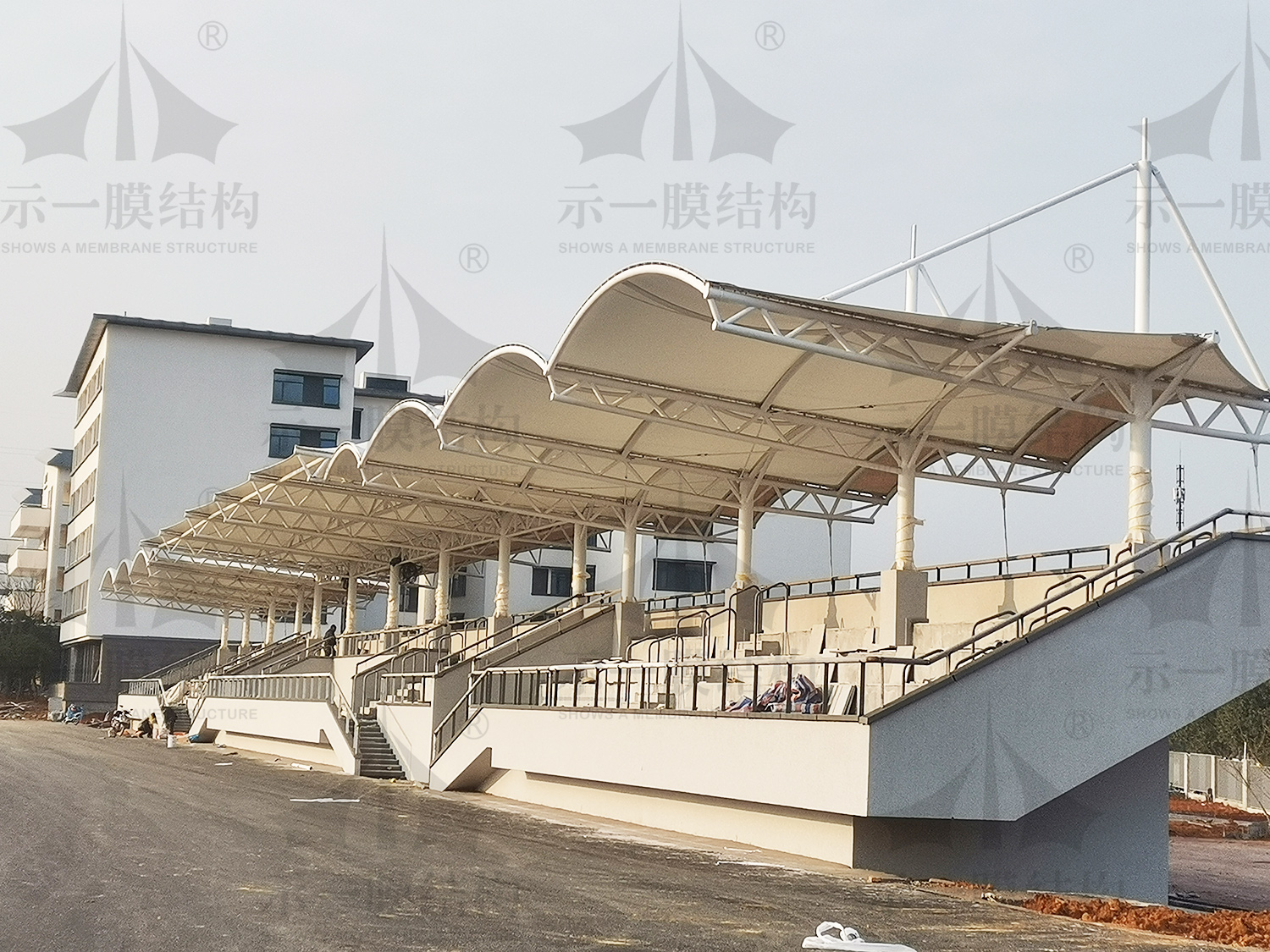 膜結構看臺遮陽棚:自重輕、空間跨度大,施工安全快捷,使用年限長。