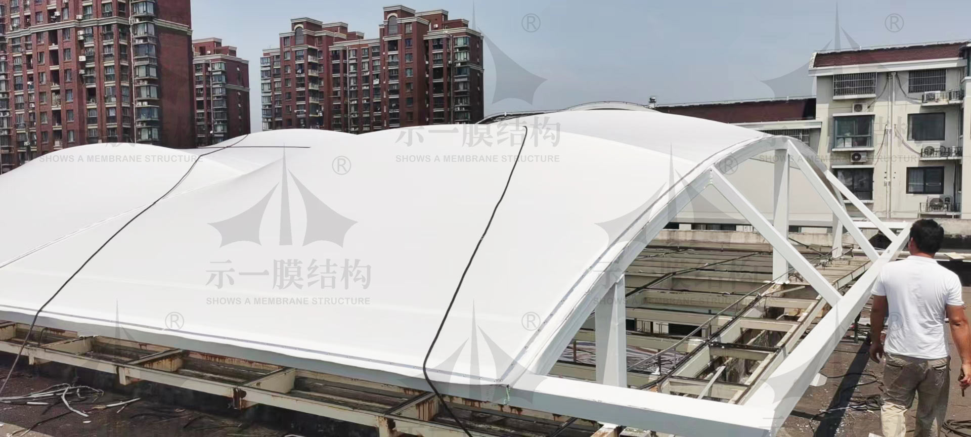 近期有上海示一膜結構承接的一個幼兒園膜結構采光頂棚即將進入收尾工作,此次工程地址是在青浦華新地區,膜材采用的是PVDF高透光建筑膜材,下面我們來介紹一下膜結構頂棚優勢有哪些呢?