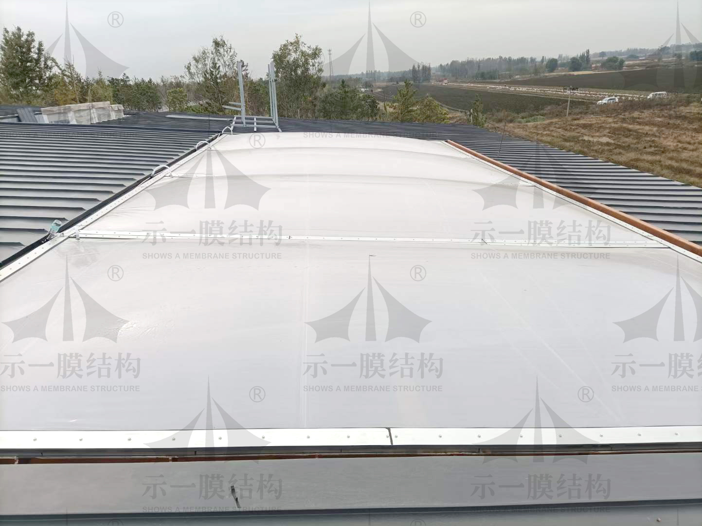 ETFE膜材是透明色,很多膜結(jié)構(gòu)工程使用ETFE膜材作為屋頂使用材料。這樣不僅在外觀上凸顯新穎,同時也給膜結(jié)構(gòu)建筑視覺增加了光亮。