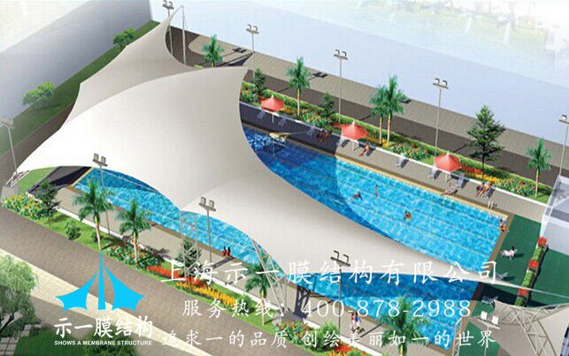 室外泳池遮陽棚或遮陽傘的搭建必不可少,膜結構遮陽棚不僅造型靚麗,更重要的是它防紫外線功能和隔溫效果,讓人們戲水的同時更覺愜意。展翼膜結構經過多年來在膜結構行業的經驗積累,設計及施工水平俱佳,為您提供獨特創新全方位的膜結構工程方案。