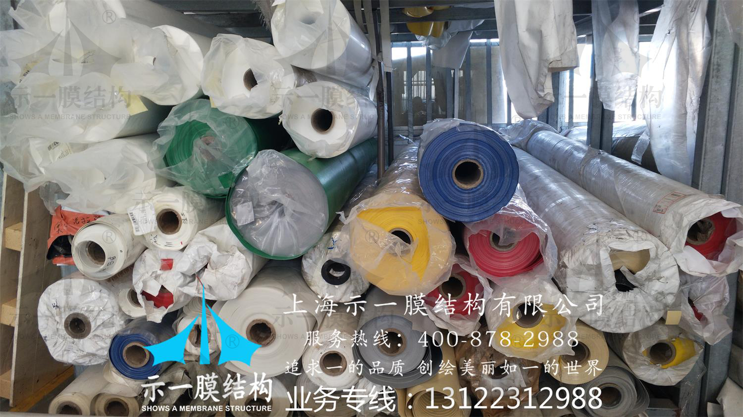 PVC膜材其基布為聚酯類、聚酰胺類的纖維織物,然后再基布表面用PVC涂層處理,顏色多為乳白色或者半透明,是開發與應用比較早的建筑膜材。PVC膜材按照強度可以分為五個等級,一般厚度大于0.5mm, PVC膜材優點是價格便宜,材質柔軟,施工方便,但是其強度、使用壽命、防火性能、自潔性能都比較差,膜結構車棚早些時候使用PVC膜材較多,如今已經逐漸被淘汰。