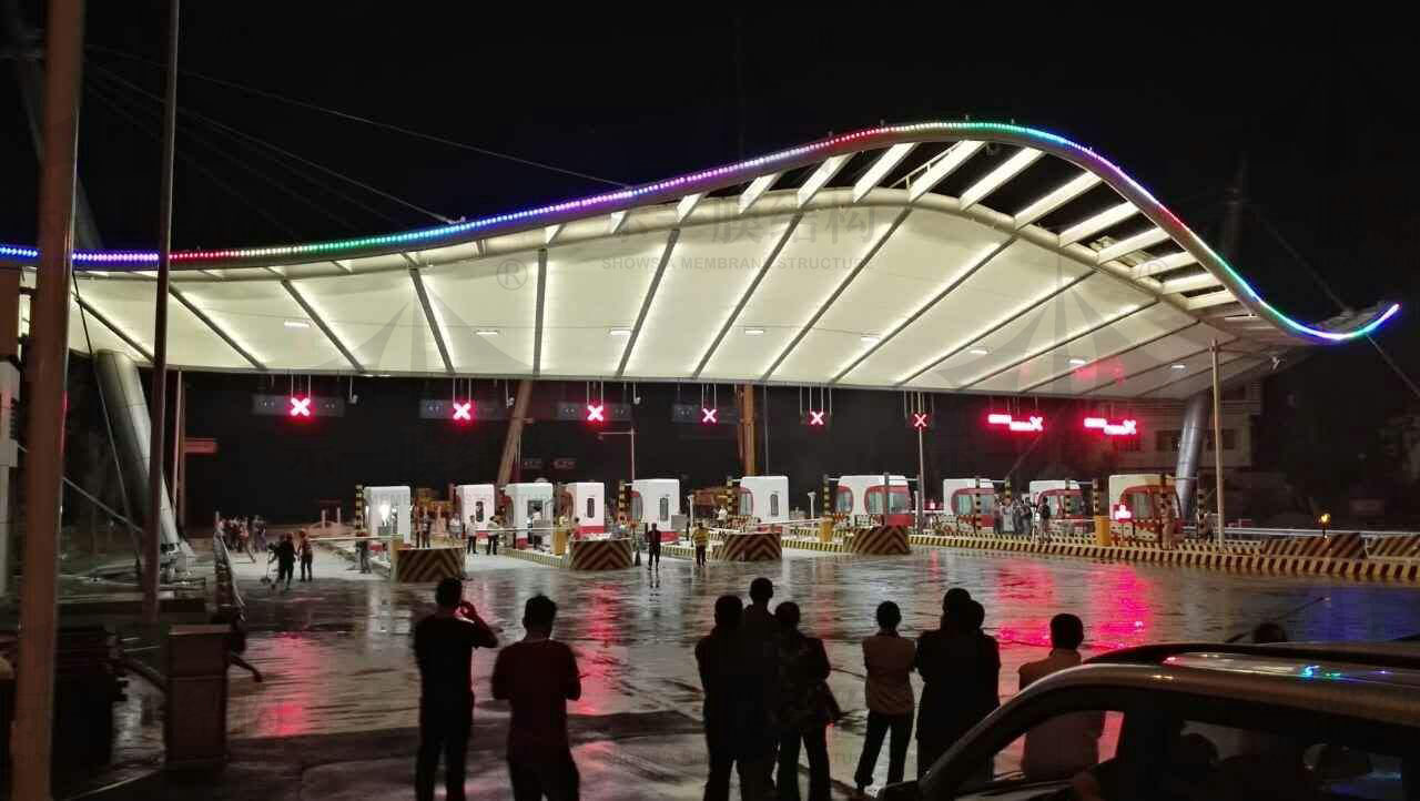 膜結構加油站和膜結構收費站現在很多都是選擇膜結構來建造,以工期短,壽命長,造型美觀,自潔性強,防火等優點。