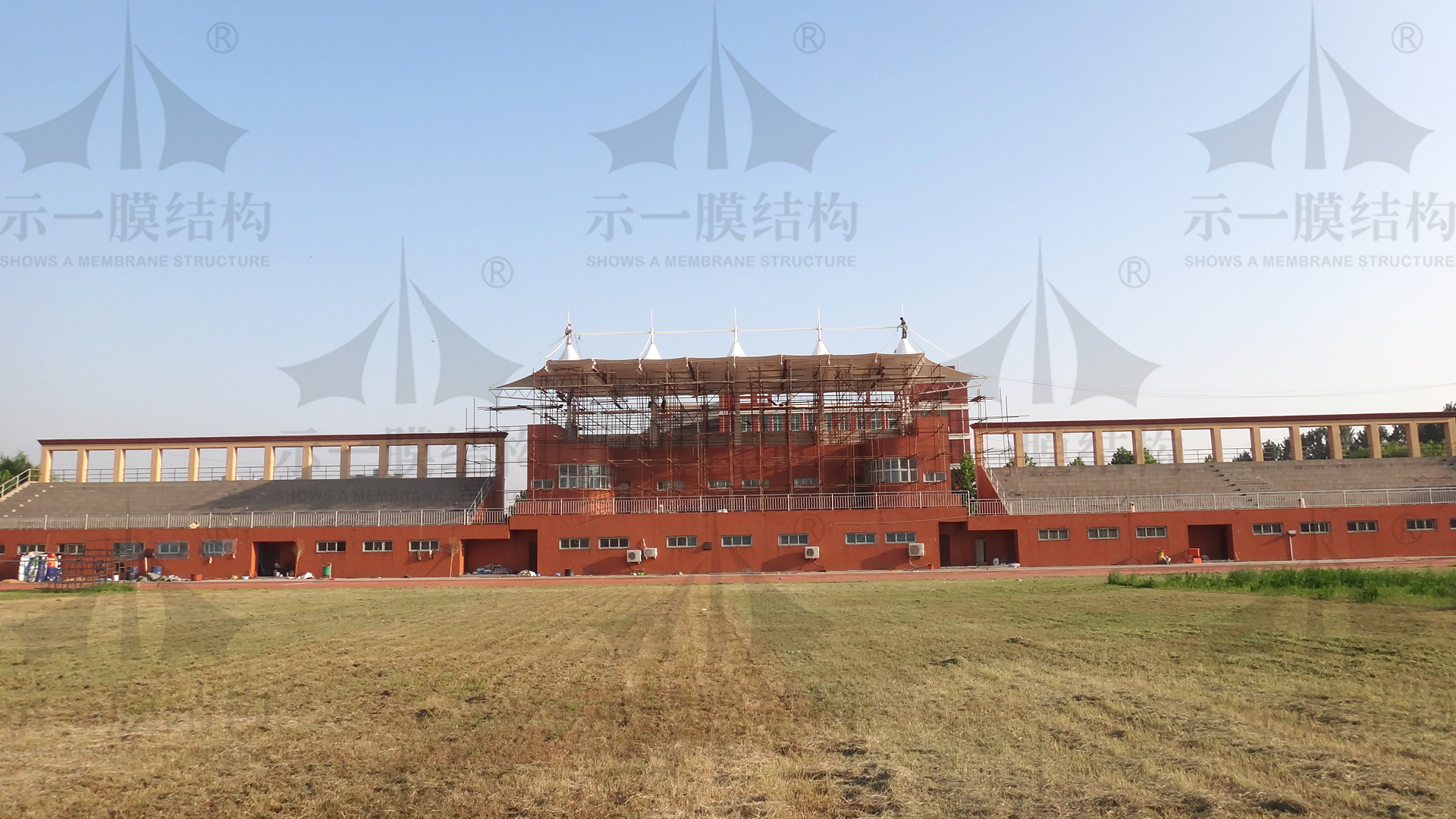 膜結構看臺適用于學校操場看臺或主席臺、體育館大跨度看臺等場所,膜結構看臺自重輕、空間跨度大,施工安全快捷,使用年限長,與傳統混凝土看臺相比優點凸顯。